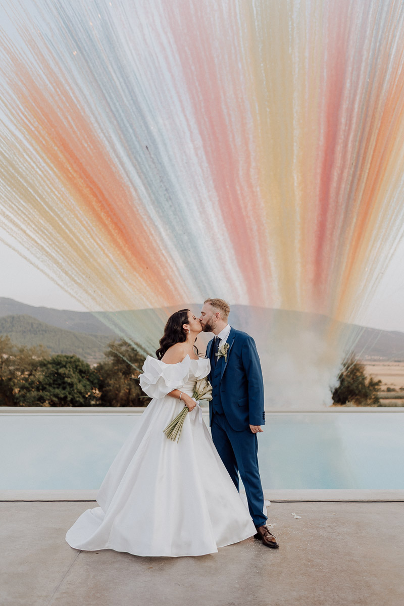 Some love stories travel across borders to find the perfect place to be celebrated. Faidra and Paul came all the way from the Netherlands to say their vows in Kavala. Their intimate civil ceremony took place at Elaionas Estate, by the pool, surrounded by friends and family who had travelled from different parts of the world to share this special moment with them. As the sun set, the celebration turned into a vibrant party filled with laughter, music and unforgettable memories under the summer sky.