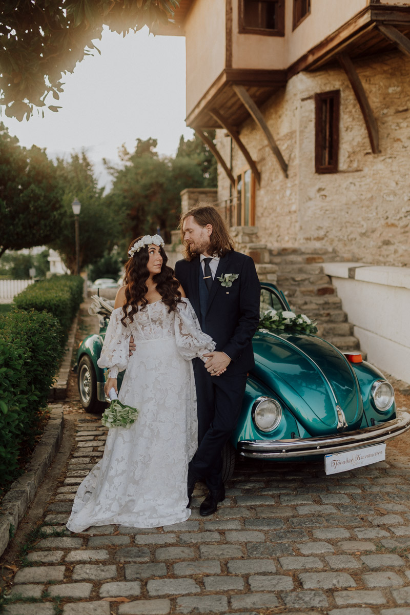 Konstantina and Jonathan travelled from England to celebrate their wedding in Kavala, choosing the historic Baptistery of Lydia for their ceremony. Arriving in a vintage Volkswagen Beetle, they added a timeless and romantic touch to their special day. Surrounded by family and friends, the couple shared an emotional ceremony before continuing the celebration in the beautiful city of Kavala.